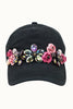 Step out like the floral diva you are with this black embellished floral hat, featuring bold 3D beaded flowers, sparkling crystal accents, and dramatic pink roses. This statement baseball cap screams I’m feminine, fierce, and guaranteed to snatch compliments every single time.