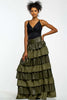 This skirt is pure drama in motion—because why whisper when you can make an entrance? Crafted with layered ruffle tiers in a deep olive green, this Maxi statement skirt delivers volume, texture, and attitude. The high waistband cinches the waist while the cascading layers give that luxe, runway-ready flow with every step. It’s not just a skirt—it’s a moment.