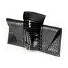 The Eclipse is a bold expression of contrast, smooth and structured, glossy and matte, refined and untamed. Handcrafted from black croc-embossed Italian leather, this clutch is elevated by a sculptural high-gloss accent that commands attention. Its origami-inspired silhouette folds elegance into power, creating a statement piece that embodies The Dark’s fearless design philosophy. Designed for those who embrace the night and the spotlight, The Eclipse moves effortlessly from art gallery to after-hours. Details: Genuine Italian croc-embossed leather Sculptural high-gloss leather overlay Magnetic flap closure Designed and handmade in The Dark atelier Care Instructions: Store flat in a dust bag when not in use. Avoid exposure to direct sunlight, oils, and liquids to preserve finish and structure.