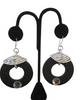 These statement dangle earrings feature a bold black circular hoop design accented with silver textured detailing and a faceted gemstone crystal accent for extra shine. Lightweight yet eye-catching, these geometric earrings blend modern chic with artistic flair, making them perfect for fashion-forward women who love unique jewelry. Ideal for adding drama to casual or evening outfits, these handmade boho-chic earrings are a must-have accessory.